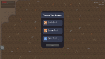 Collect rewards between waves to amplify your build.